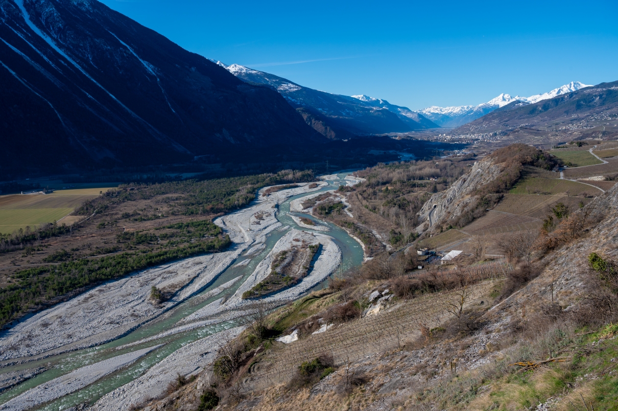 Die Mündung der Raspille – welche Ober- und Unterwallis trennt – wurde stark aufgeweitet und revitalisiert. Schon im ersten Jahr nach den Bauarbeiten brüteten hier Flussregenpfeifer.